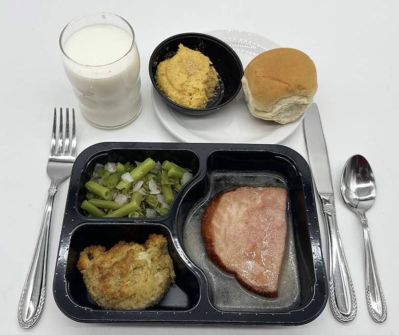 | Show Sides Hashbrown Patty Country Style Tomatoes No Bread Dessert: Waffles with Sugar free Syrup Beverage of Choice | Show Sides Japanese Vegetables White Rice Wheat Bread Dessert: Sugar Cookie with Apricot Glaze Beverage of Choice | Show Sides Black Eyed Peas Mixed Greens Texas Bread Dessert: Chocolate Chip Cookie Beverage of Choice | Show Sides Herbed Broccoli Italian Blend Vegetables Dinner Roll Dessert: Fruit Cup Beverage of Choice | Show Sides Dirty Rice Cajun Coleslaw Multigrain Bread Dessert: Warm Spiced Pineapple Beverage of Choice |