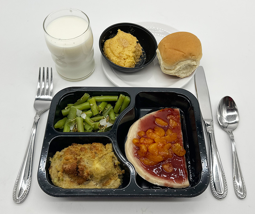 | Show Sides Red Skin Mashed Potatoes Baby Carrots Texas Bread Dessert: Caramel Brownie Beverage of Choice | Show Sides Black Beans Spanish Rice Flour Tortilla Dessert: Oatmeal Raisin Cookie Beverage of Choice | Show Sides Cornbread Dressing Herbed Green Beans Dinner Roll Dessert: Pumpkin Cheesecake Beverage of Choice | Show Sides Winter Blend Vegetables Sweet Corn Wheat Bread Dessert: Cinnabun Cake Beverage of Choice | Show Sides Mediterranean Blend Vegetables Confetti Rice Multigrain Bread Dessert: Fresh Banana Beverage of Choice |
